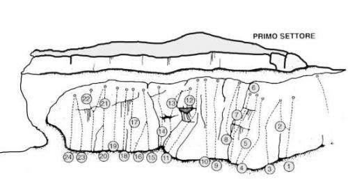 Ha ben 44 vie di arrampicata, di roccia arenaria, non sempre intuibile, per lo più su placca, con passaggi in aderenza su uno sviluppo di 15/18 metri ed il grado di difficoltà va dal 3 grado al 7b.
