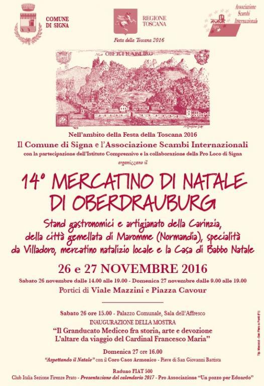 Sabato 26 e domenica 27 novembre il centro storico di Signa, ospiterà il 14° Mercatino di Natale di Oberdrauburg.