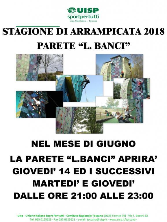La parete artificiale di arrampicata "L.Banci" nel parco dei Renai di Signa sarà aperta dalle ore 21:00 alle 23:00.