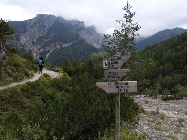 Dal parcheggio del Rif. Pordenone, circa a quota 1200m, si prende il sentiero 353 che si dirige a nord e risale l’ampio ghiaione che incide la valle.