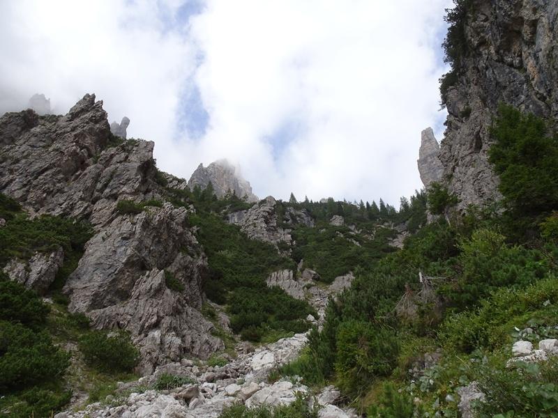 Per i primi 100 metri di dislivello passa in mezzo al bosco, per poi proseguire attraverso le ghiaie ed i massi. Intanto si cominciano a vedere le varie e belle cime che contornano la valle.